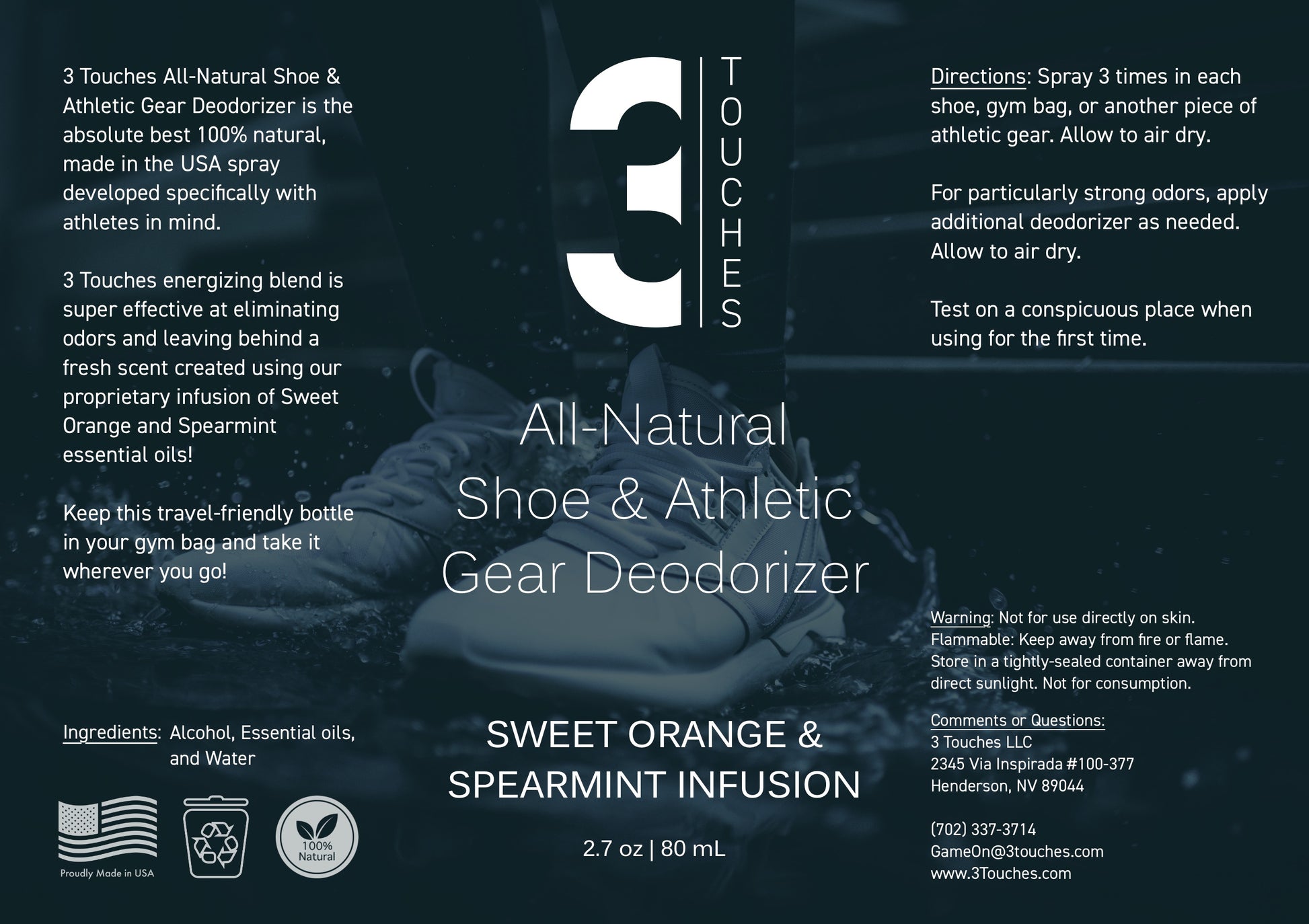 - 3 Touches All-Natural Shoe & Athletic Gear Deodorizer